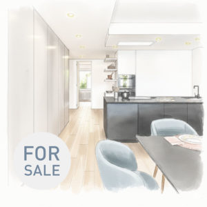 Dazu haben wir einige Wände insbesondere im Eingangsbereich und im Wohnzimmer entfernt und dem Apartment ein wirklich modernes Ambiente gegeben. Die u-förmige Küche haben wir mit einer Kochinsel aufgewertet und zur Veranda hin geöffnet. So kann man beim Kochen dem Leben draußen zuschauen. Den chaotischen Eingangsbereich haben wir entrümpelt und dafür einen neuen Kleider- und Schuhschrank eingebaut.